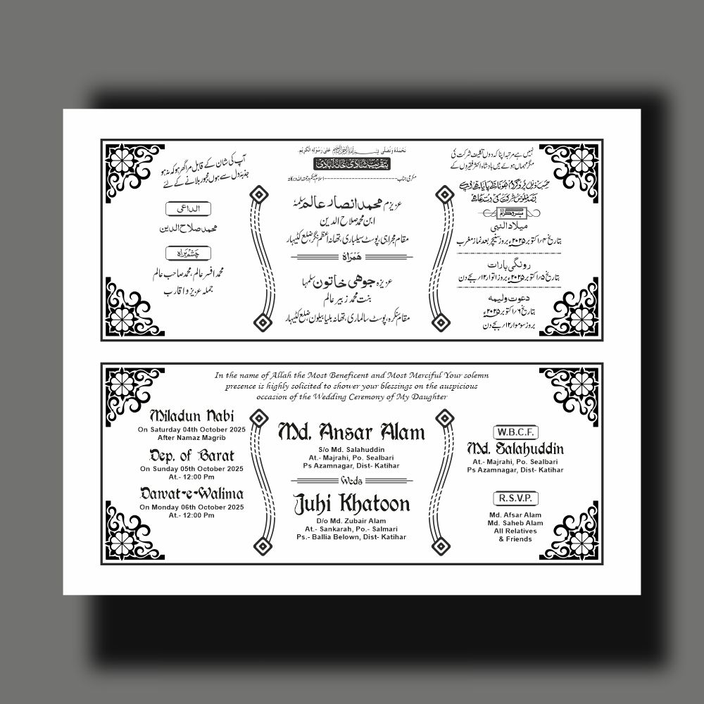 Explore our Muslim Wedding Card Design Package to create the perfect invitation for your special day.